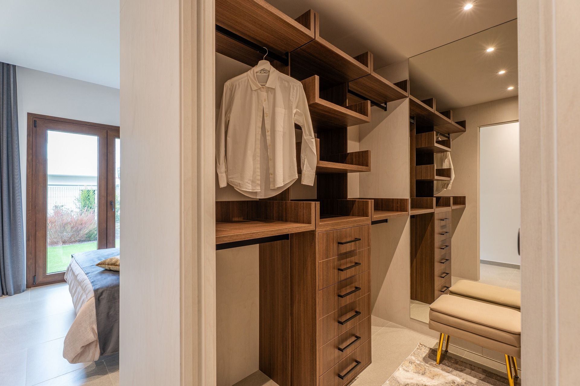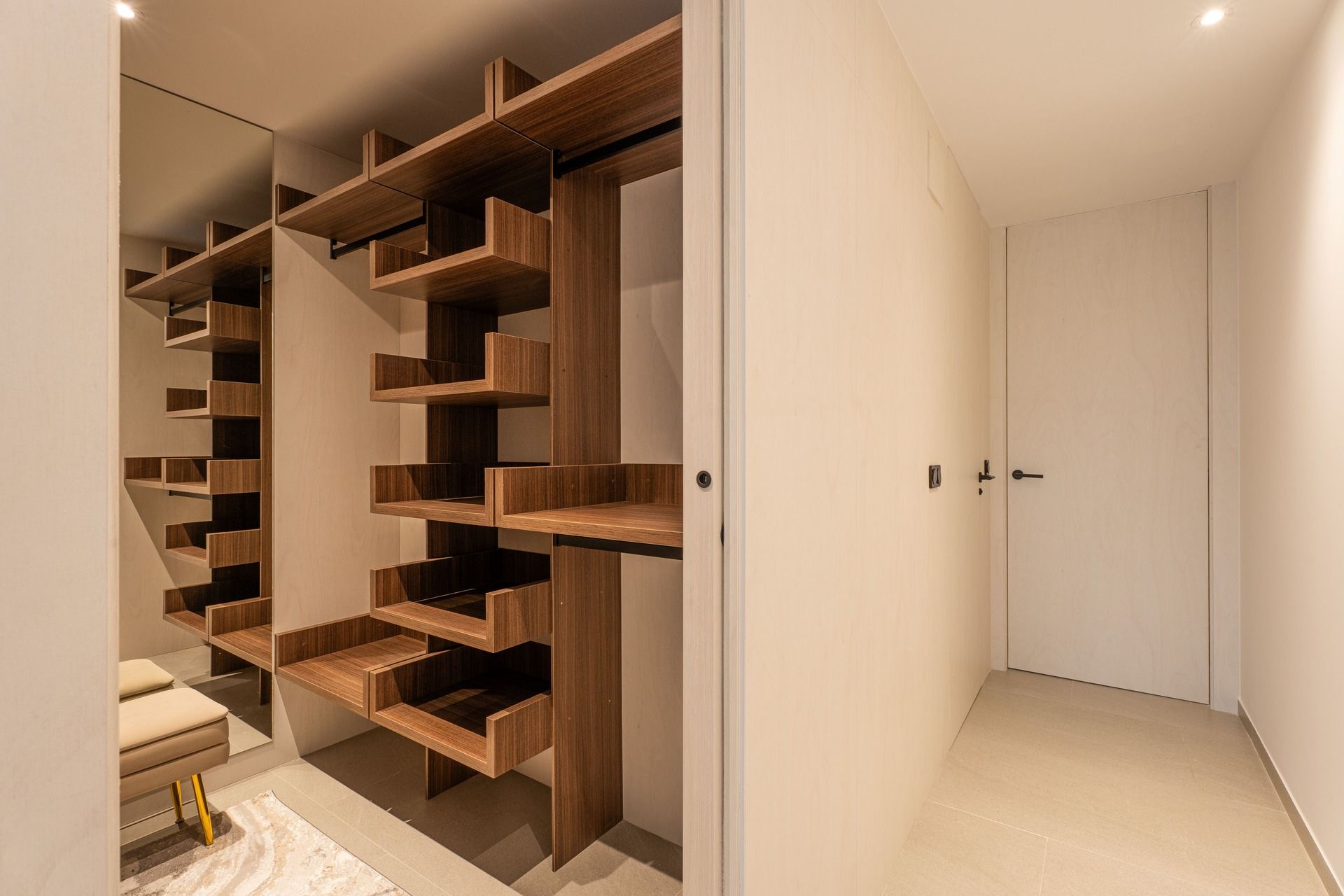 Distribuidas en una sola planta, las villas cuentan con tres dormitorios amplios equipados con armarios empotrados y un vestidor en la suite principal, donde el confort y la privacidad se unen de manera natural. Los dos baños, uno de ellos en suite, están completamente equipados con lavabo, espejo, mampara de ducha completa y suelo radiante, aportando un toque de calidez y bienestar a los espacios.